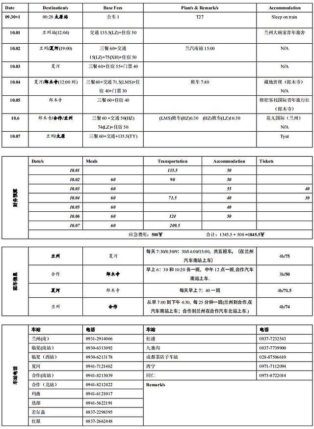 从郎木寺到合作的班车最早一班是6:30,7点多也有一班,但是一天总共三班车,貌似最后一班是下午两点,大家要是去合作/兰州的话记得问一问当地人。郎木寺班车到达合作后(大概4小时),可以打车到合作车站(2¥/人)。合作到兰州攻略上说每半小时一班,但实际上经常会没15分钟发一班,行程大概是4个小时。所以6号7号做了两天车,凌晨4点才到学校!旅途这样结束,一切回归正轨!