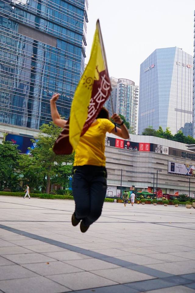 大树拿旗子出场~(其实这个照片是大树发扬好人精神,配合老猪要求跳跃的。最后老猪没拍清楚……)