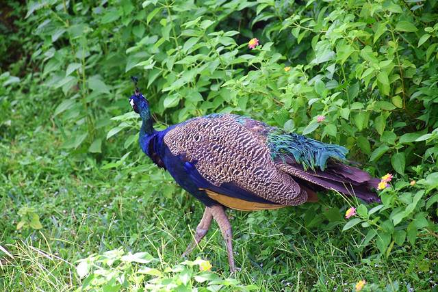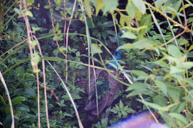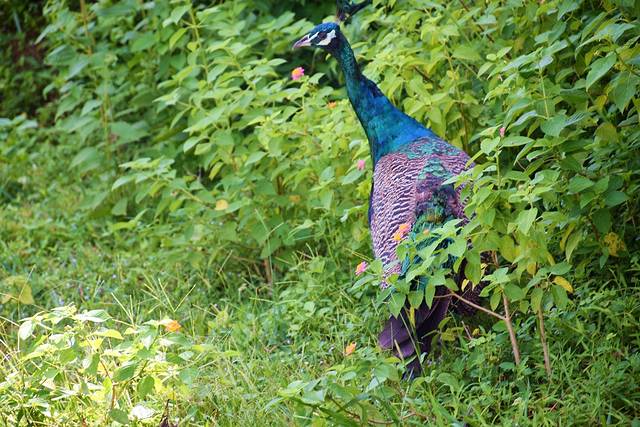刚爬了没几步阶梯,居然看到了孔雀了,对,就是在路边看到的!不是动物园里隔着笼子的那种