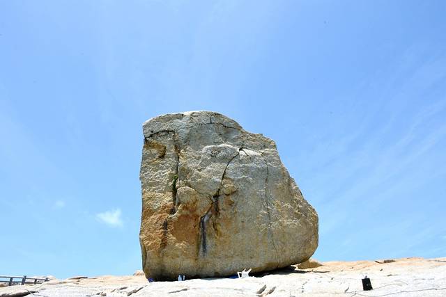 飞来石,据说重达800吨,神奇的是地下悬空,还位于斜坡之上,给人一种错觉,觉得它随时会倒下,而它却千百年来就这样屹立着。