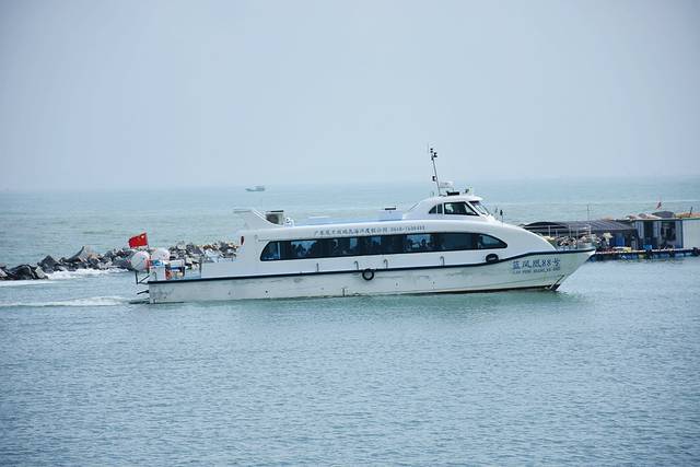 进出放鸡岛只有通过官方的船只,每天进岛的早上的9:00 10:00 12:00 14:00 16:00 17:00共6个航班,出岛时间有 10:00 11:00 13:00 15:00 17:00 18:00,也是六个航班,但是会有受海上天气的影响而调整,我们就刚好遇上台风天,停航了,而开航时间只有当天才能知道,所以在茂名市区待了一天,第二天早上才收到通知可以上岛,上岛的船票包放鸡岛的门票一共180元,网上预定可以便宜15-20元,但是需要提前3小时预定。上岛时要出示船票,离岛时不需要出示船票了