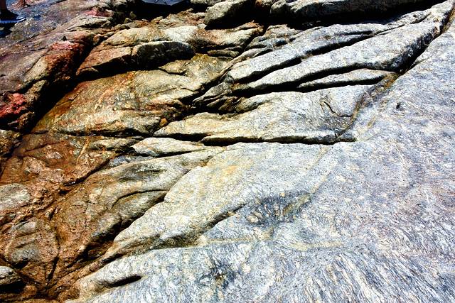 鸡冠石这里属于放鸡岛的东边,这里风浪很大,受海浪影响,这里基本都是岩石,岩石上也留下了道道的海浪冲刷的痕迹,仿佛诉说着这千百年来的动人故事。
