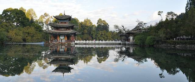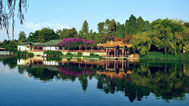 空气和湖水非常干净和安静,左上方的黄色建筑便是大观楼啦!