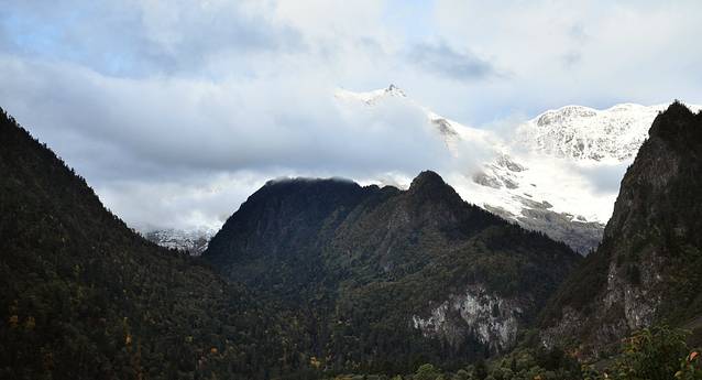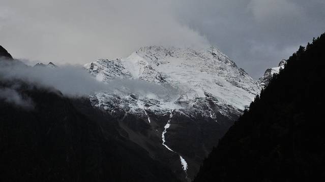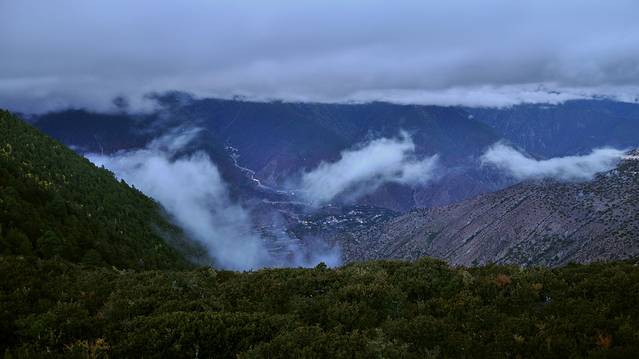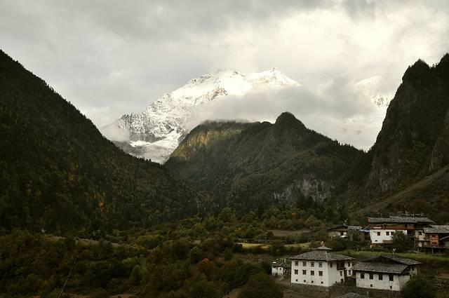 拍拍山谷中的下雨崩,开始有袅袅炊烟。