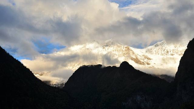 谢谢强大的阳光,终于看都了点点雪山。继续期待,期待明日,能看到阳光对雪山的短暂亲吻—日照金山!