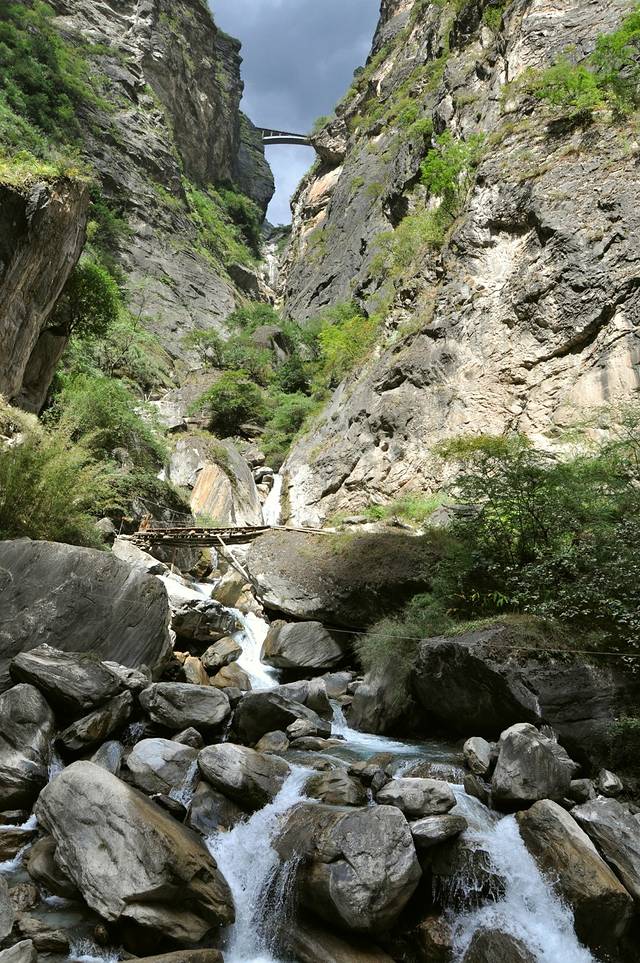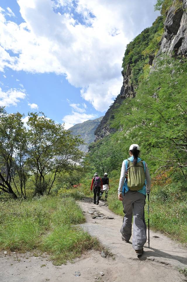 约十点半,到达中虎跳。峡谷间,小小的泥石路,往下,往下走。