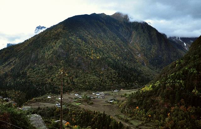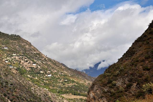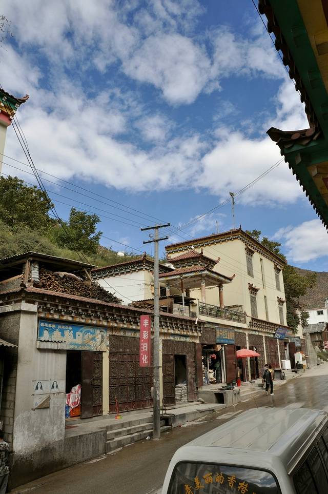 早餐结束,我们开始离开奔子栏,回程的路和出发时不同。这是大宝在行进中的车辆中拍的,亮点是山坡上的点点白房子!