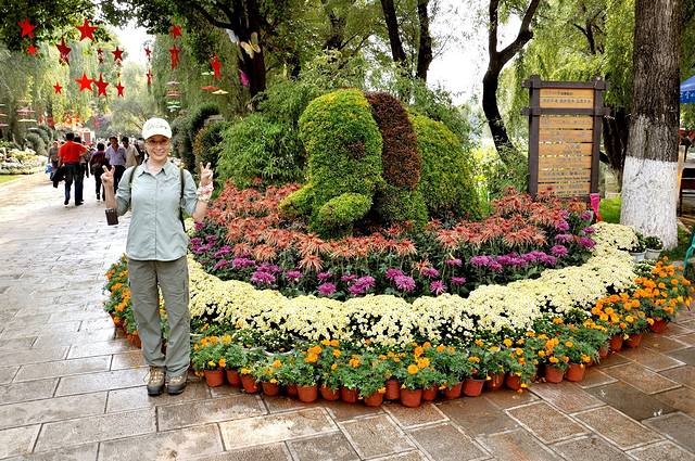 与大观园内的盆盆菊花合影罗!