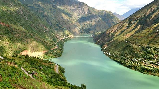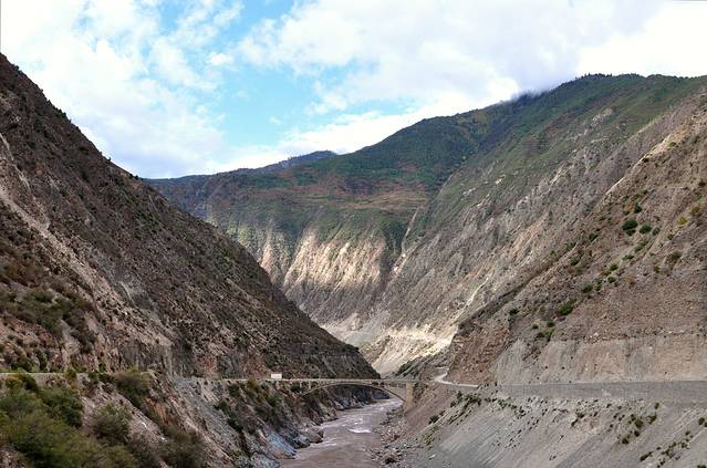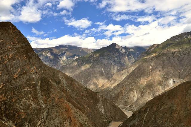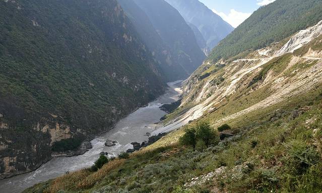 前往虎跳峡,坐在车中,听到的湍流声,看到的峡谷。