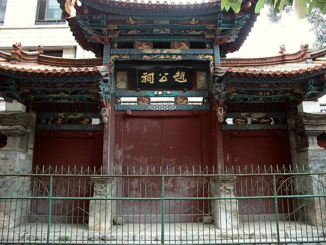 从火车站,坐车到翠湖公园,下车后,经过一条早上还很冷清的马路,看到路边的赵公祠,铁栏围着仅剩的门面。