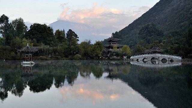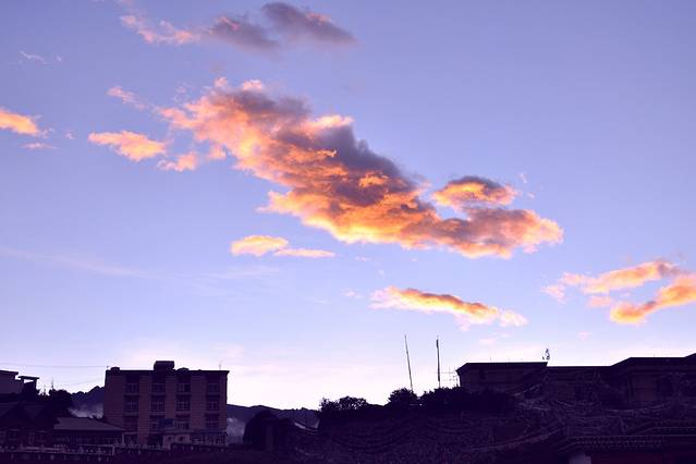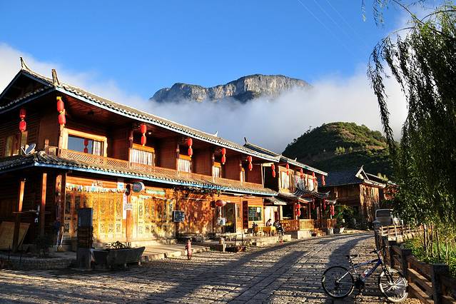 6:30,看到泛红的晨曦,早起,微凉。趁着宁静,出发去黑龙潭,据说哪里是远观玉龙雪山的最佳位置。还有,今天,其他重要景点分别是束河古镇,白沙古镇。所以,统称,古镇骑行一日游。
