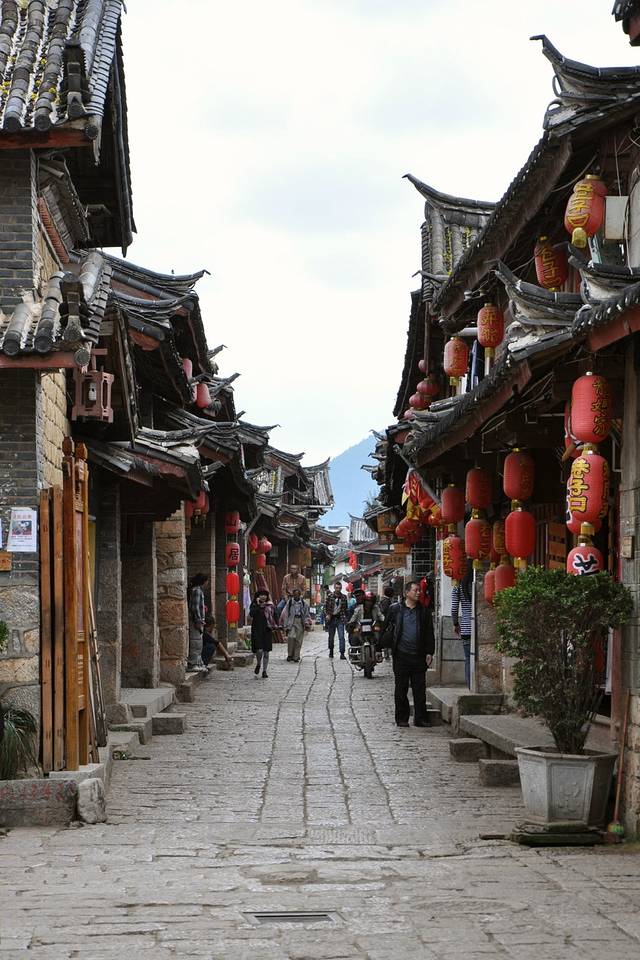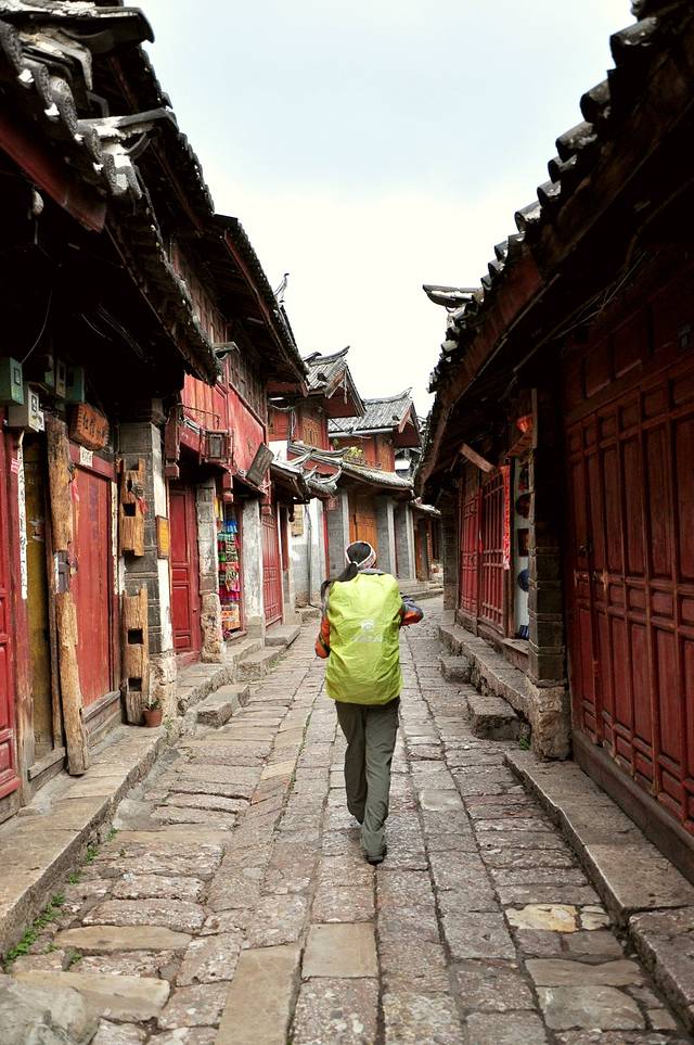八点多,从早已沸腾的丽江新城拐如古城,石板小巷蜿蜒,红漆黑瓦房相拥,一片安宁祥和。