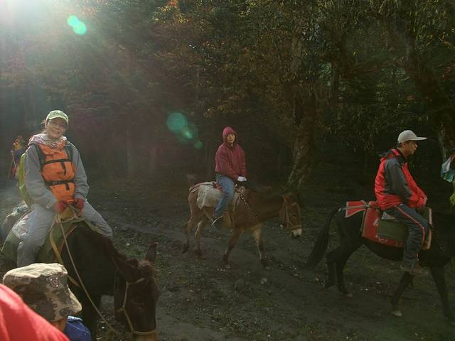 缕缕阳光从林间透过,骡儿驮着我们,走在林间小路上!