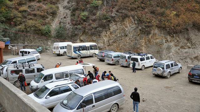 为了不影响今日进雨崩的行程,我们一行8:30准时离开了飞来寺。继续在无尽的山间逶迤前行,道路很孤单很颠簸。