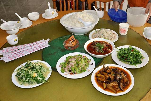 中午,在宁蒗县的某处,我们的午餐。虽然是大锅菜的快餐,但味道很新鲜。