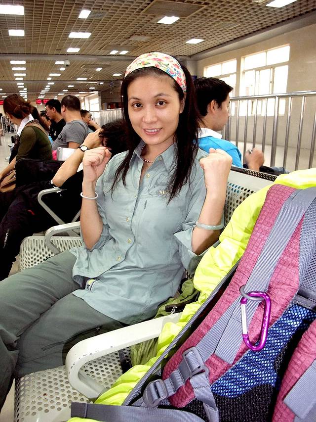 大背包、快干衣裤,我的旅途标志!哈哈,在广州火车站,期待出发!!