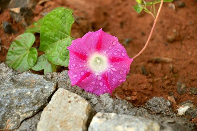 上岸后,雨渐止。里格的清晨,从路边的充满生命力的小小花儿开始。