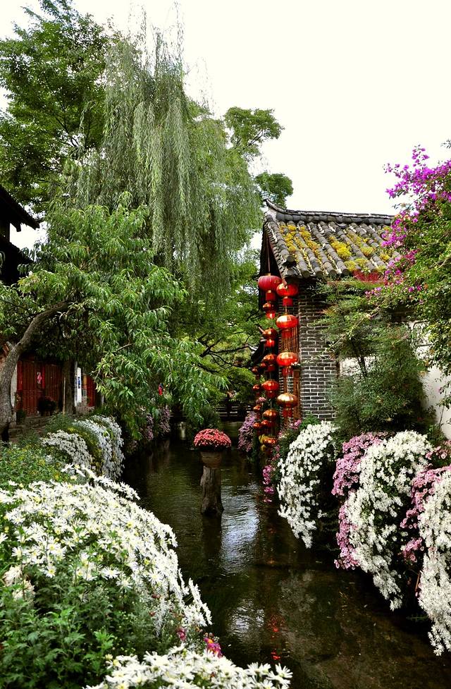 清晨,穿行于古城中,真的真的是无比的享受。茂密的老房子,因为有川流的小溪绿水和斗艳的花儿叶儿,显得如此生动。