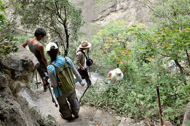 陡陡的山路中,大宝仍坚持一路留影^_^