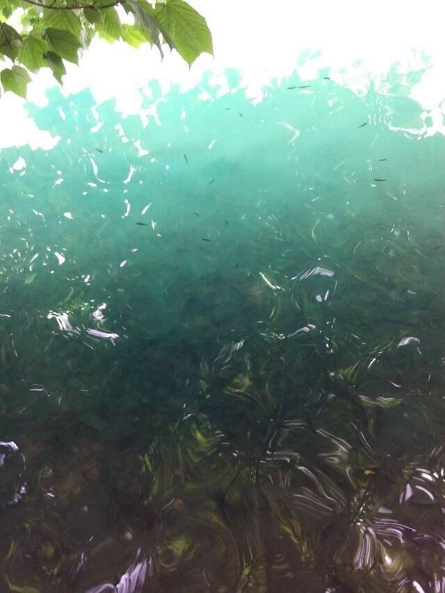 走在大龙湾对岸的木栈道上拍的。龙湾的水清澈见底,可以看得到黑色的小鱼苗。