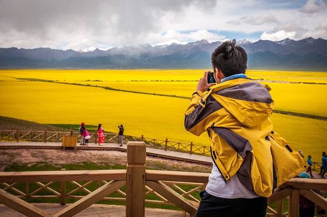 不同于南方油菜花,北方的油菜花较矮一些,但门源广阔的气势、以岗什卡雪峰为背景的大气却是南方所不具备的