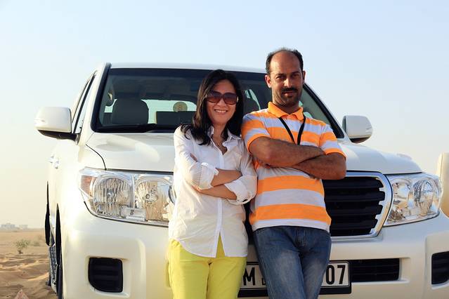 这里有个插曲,那天去杜拜沙漠狂飙,我朋友问司机大叔结束后能否送她回公司的住处,大叔很爽快地答应了。回程的时候已经快晚上10点钟了,司机大叔坚持要先送我们回沙迦的酒店,然后再返回杜拜送我朋友,我们都觉得这样绕路走,还在深夜,很不妥当。但时间太晚了,地铁已经停运。打车从沙迦到杜拜又贵的离谱。别无其他选择,几番讨论,司机大叔依然坚持,我们只好明说,认为在深夜让他送一个单身女孩走那么远我们觉得不合适,结果大叔非常理解,哈哈一笑,豁达地说,“这里是Dubai啊,不是印度,不用担心!”。可是后来,大叔路上打了个电话,跟我们说,由于他要去看他妹妹,不送我朋友了,他会让他同事送。这么晚了,这样突然的事我们都觉得很怪异,面面相觑不知下一步该怎么办。到了酒店,大叔的同事已经在等了,我们七上八下的悬着心把朋友送上车,叮嘱她有什么事一定要打电话。一个小时后,朋友短信说安全抵达,哈哈,悬着的心总算落下来了,Dubai就是Dubai,还真不是吹的!司机大叔即有爱又友善哦。