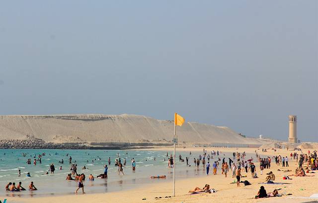 朱美拉海滩,远处是大名鼎鼎的帆船酒店