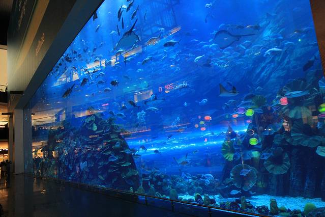 Dubai Mall里顶天立地的水族馆装饰墙,连鲨鱼都在里面自由自在地游荡