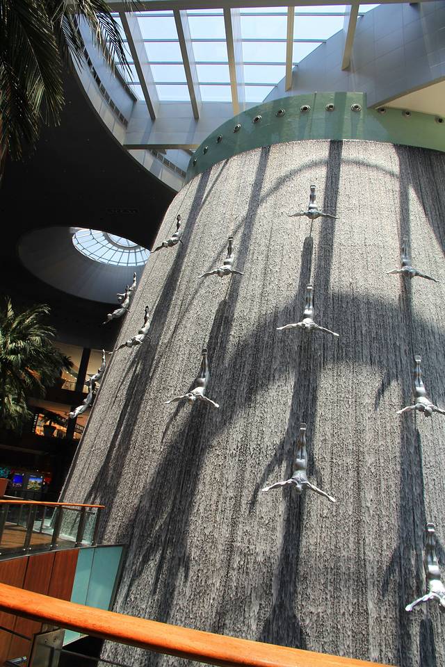 Dubai MALL里四层楼高的室内瀑布,只是这整齐的跳水人装饰让人不知说什么好