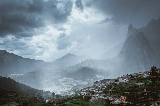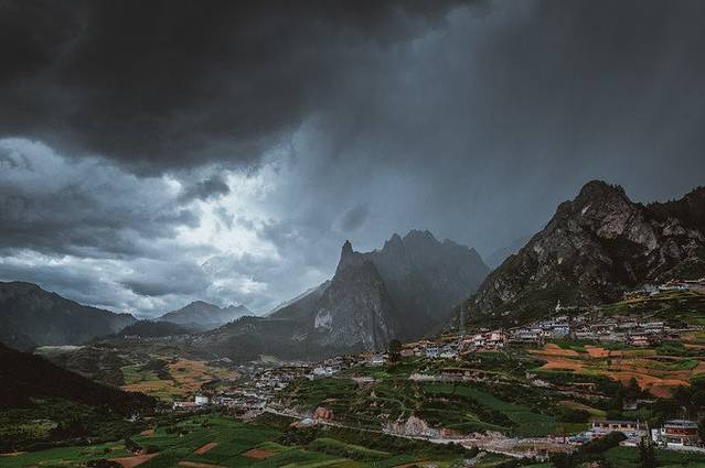 一到扎尕那,本雨神是大发神威,一时间暴雨如倾。暴雨之前看那扎尕那村寨,别有一番神奇光景。