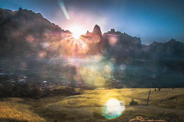 晚上住在扎尕那村寨里,早上离日出的地方非常近,机位又好