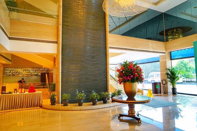 上海国际贵都大饭店造型别致,由27层的主楼和9层的裙楼组成。共设有房间500多间。一进大堂就被酒店独有的香气所吸引,让人舒缓而忘却门外的炎热,装饰富丽堂皇很有气派,彰显酒店的商务特色。而大堂中间的雕塑、类似琉璃的镜面墙、以及二层的艺术画作,又让大家体味到了酒店附着浓郁文化气息的另一面。