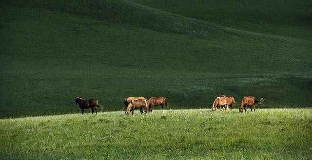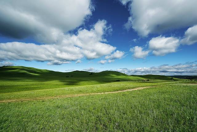 清晨,拉开窗帘放眼一望,豁然开朗!湛蓝的天空下,碧绿的草原上,牛羊马悠闲的吃着早餐,白得不能再白的云慵懒的在天上挪动。草原啊!