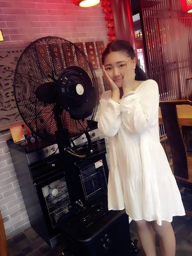 我身后的电风扇底下连着的是一大盒冰,化成冰气从管子上又连到风扇前面,风吹出来爽死了,比空调自然舒服。