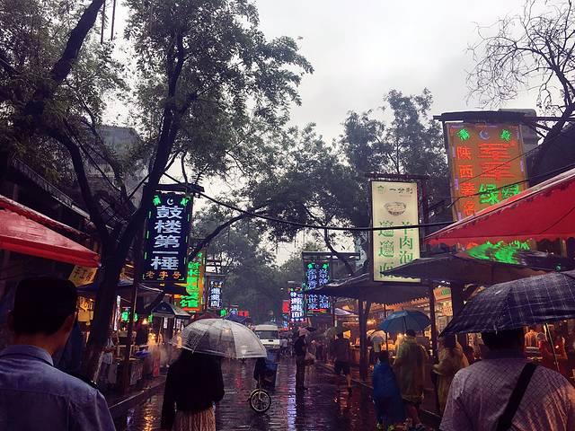等呀盼呀,十点半地下商城终于开门了,逛了一会儿额娘发话想去别的地,不想看衣服。那必须赶紧奉旨,立马转战回民街。本以为大雨肯定没什么人,但事实是并没有少多少人。