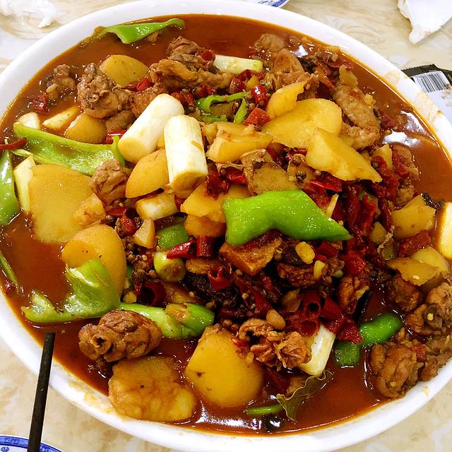 差不多五点了搜了下大众点评,看的大家推荐的福顺祥大盘鸡,就在景区附近就打车过去了。味道一般,我觉得出名的主要原因就是份量极大,价格亲民。不预约他会告诉你需要等半小时,一定不要踏实等着不催,我们就乖乖没催,比我们晚来半小时没预约的都吃完了也不给上,气的要走赶紧上了,这样欺负老实人好嘛。