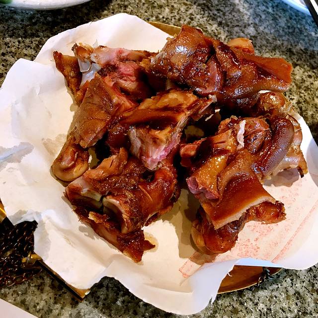 卤猪蹄端上来挺有特色,是放在一杆小称上,味道一般吧,不过处理的挺干净,没有毛什么的,也蛮劲道的。