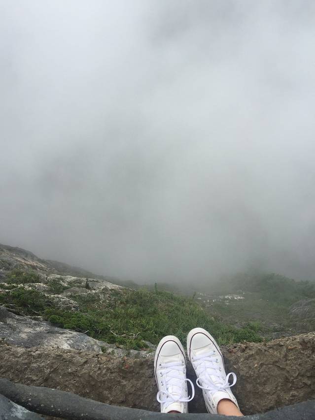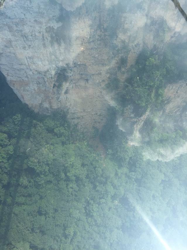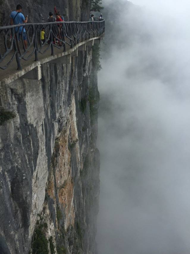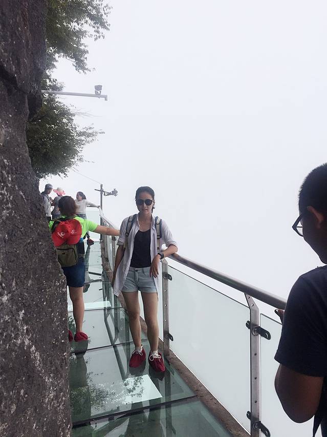 来的时候雾太大,居然看不到下面景,又开心,又着实有点小失望。开心是因为我也怕啊。失望是排了很长队,没看到美景!