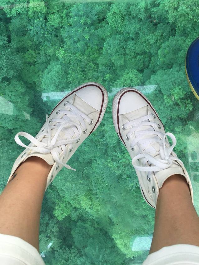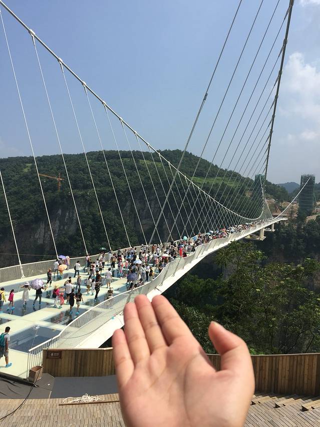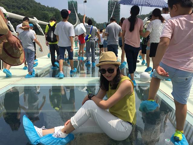 原本20号试营业第一天来结果没抢到票,最快就24号,每天都激动的睡不好。不过来了过后人太多感觉见面不如闻名啊!高度在四百左右!有恐高的可得注意了,小心你的小心脏啊!看我如此淡定,其实我走完后都有点头晕了😏到这里才明白上山容易下山难的原因了,下山可真是陡的不得了,而且还窄。天热堵的很多人直接开始要骂人了,另外上去时一定记得备好干粮,否则山上的水就是8元,土豪可忽略!