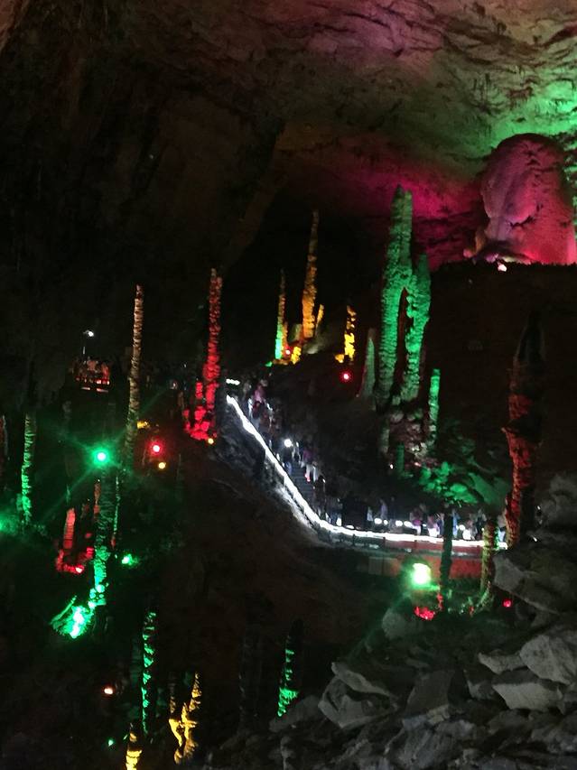 张家界这两天一直都热,进入黄龙洞瞬间凉快很多,这酸爽待着都不想出去了,里面的自然景象应该有人工成分还是比较壮观的!