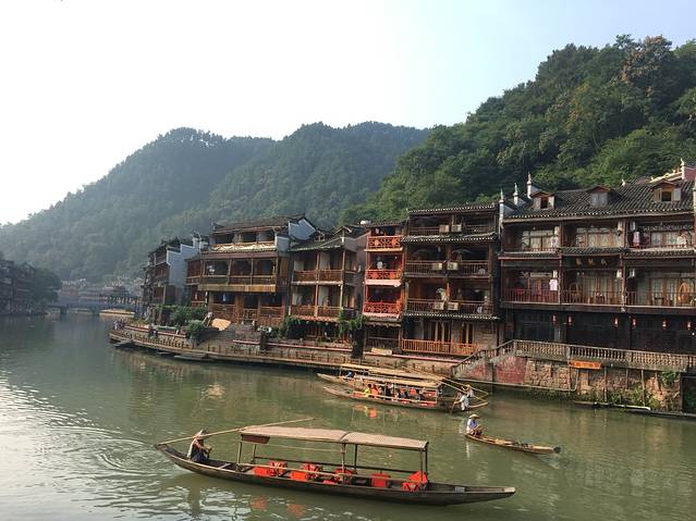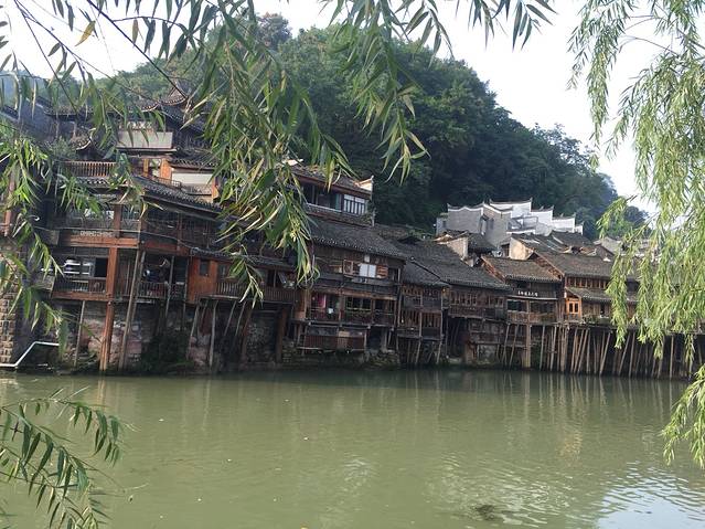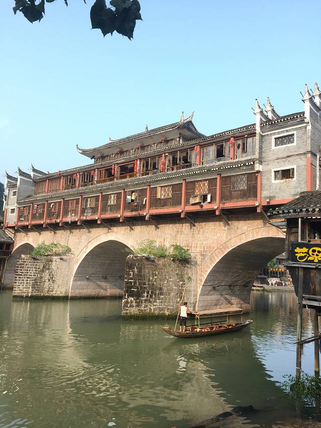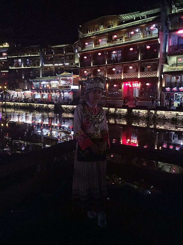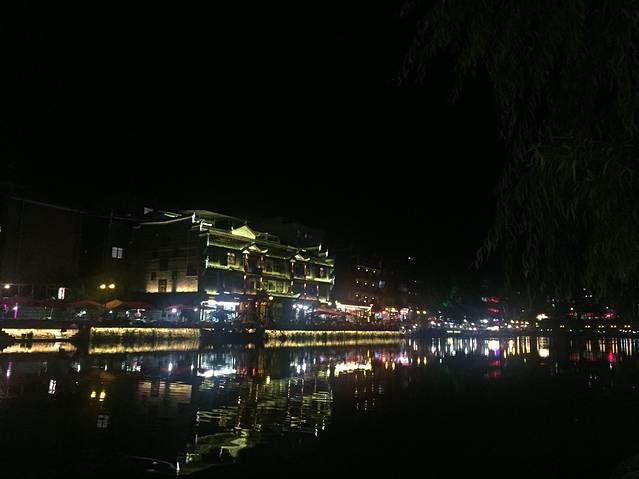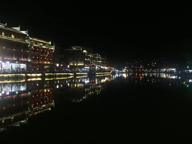 晚上感受了下凤凰古城的夜景,虽然我们凌晨12点到的,但是也阻挡不了看夜里古城的美景,毕竟古城还是晚上好看。之所以晚上才到,因为导游中途让我们自费去芙蓉镇,据说是刘晓庆拍电影的地方,在瀑布下面的古城,不过白天去了天门洞的我们实在没力气再去了。就边上休息了会等她们回来。