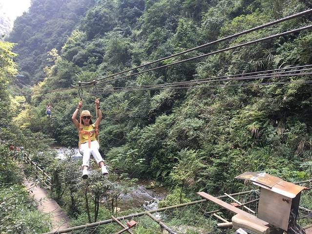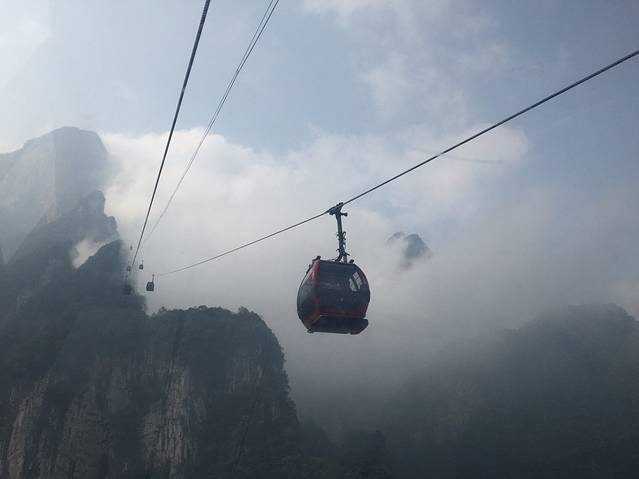 坐了下天门山的索道很是壮观,这里索道坐了近半个小时。很高,刚好有点雾有点像穿越云层的感觉,上面的玻璃栈道倒是一般般仅有40米貌似,排队却排了很久有点不爽,不过上来还是比较值得的,朋友都说这里最值得!