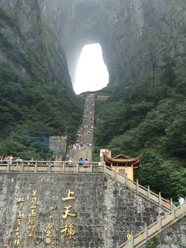 天门洞,下面的99级台阶没走,直接坐穿山扶梯了,其实还是可以感受下的,毕竟这个台阶玩极限运动大赛时最快貌似29s就下来了。运动者真是拿生命在玩,佩服!