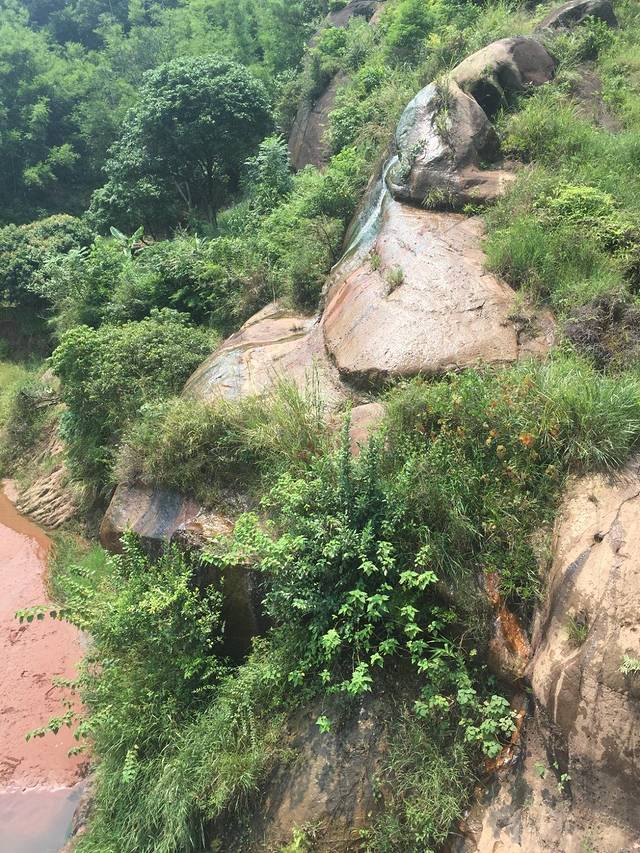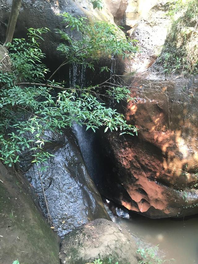 尤为奇特的是,半山腰,有两眼泉,无中生有的从一块巨岩的顶上突兀的冒出来,在石下集成小潭。我们觉得特别好玩,在哪里看了很久。此处有一个小买部,走到这没水、没食了可以补充。
