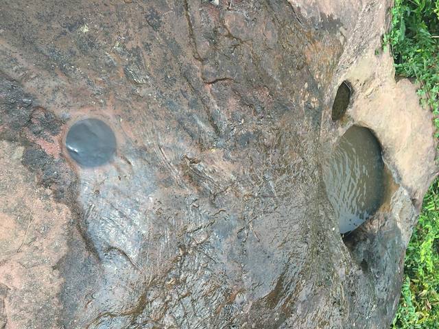 在历史人文风情悠久浓郁的钦州灵山,有这么一处淹没在莽莽丛林中的丹霞山——烟霞山。山中的岩石色泽偏红,含有很多矿物,加上流水的侵蚀,在巨石山勾勒出一个个的石穴,雨水丰沛的季节,那些水穴就成了小朋友的浴缸。