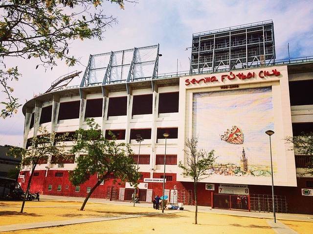 在塞维利亚(Seville)最后一站,来了离火车站(Sevilla Sta. Justa)十几分钟步行距离的塞维利亚体育馆(Ramon Sanchez-Pizjuan Stadium)。