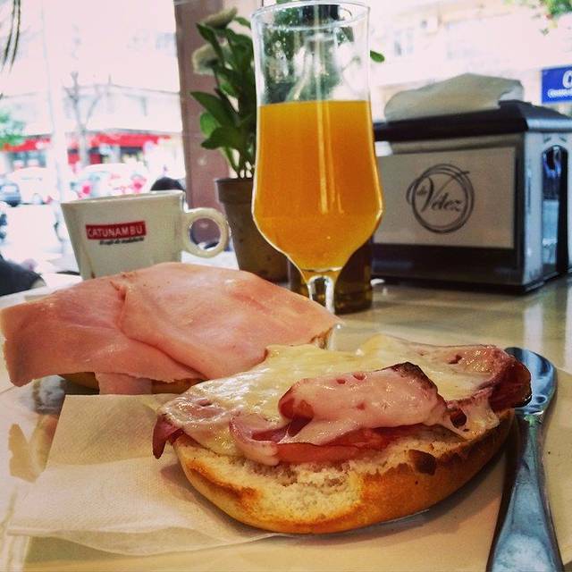 真的!好!多!人!人头攒动!的当地人拖家带口!地占据了外面晒太阳的桌子,和里面部分窗户座位,不少操着比手画脚西语的法国游客(真的好多法国人。。。卧槽。。。口音太好认!)进来占据了剩余的位置,像我这种一个人吃饱全家不饿的个体户,干脆就选择站在吧台好了!