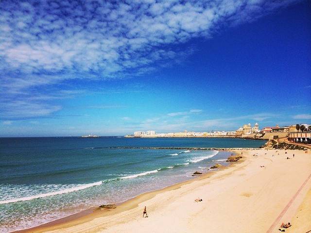 幸好后来拍脑袋决定去的加的斯(Cadiz),一个亚洲游客绝踪的海滨南部小城市,完全惊艳!了我的!预期!和host骑单车穿过小半个城市,感觉就像夏天真正地到来了,海风和阳光把我每一根头发吹向天空、渲染成金色、带着特有海的味道。「关于加的斯(Cadiz)城,你可能写上好几篇论文却仍然距离它的本质极其遥远。这是一座因古老而复杂的城市。加的斯(Cadiz)被普遍认为是欧洲最古老的定居地,现在已经进入了第四千个年头,还保有着浪漫和神秘的色彩」这段从LONELY PLANET上看到对加的斯(Cadiz)的介绍,登上了Torre Tavira这座塔,你才能明白,这段话用词中的「浪漫和神秘的色彩」准确含义是什么,从塔顶把,整,个,加的斯(Cadiz),尽收,眼底,那种特有的色彩,冲击着视网膜上最后一线抵抗力,完全,沉沦,在,这座,城市,的美,里,无法抵抗。圣巴塞斯蒂安城堡(Castillo de San Sebastián)的长长通往海中间的过道,看到被海水浸泡冲刷了数千年的岩石群,金灿灿只有潮退潮涨,除了我和一对情侣,就没有任何其他人的私家日落。❤