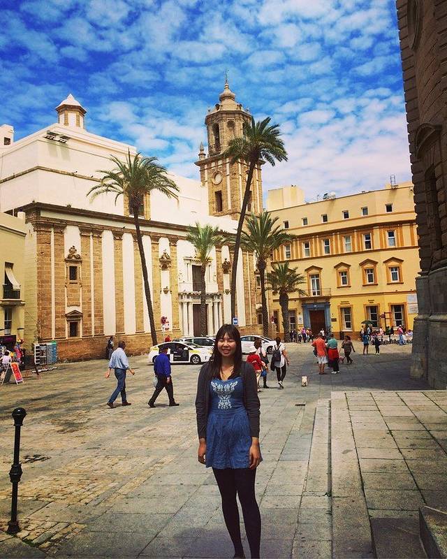 等了五六个路人!!终于有一个能拍像样的(这里「像样的」的意思是,TAT能把我和教堂都拍进去就好了,就那么简单的要求!!泪不成声地控诉:就那么难吗!我站在这人来人往加的斯大教堂(Cathedral de Cadiz)的必经小巷这么丢人地一遍遍解释为什么拍了还要拍容易吗我!)!!果然游客还是得靠(年轻点的)游客互相帮忙拍照啊!