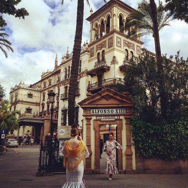 不用特地去找很出名的阿方索十三世酒店(Hotel Alfonso XIII),在市中心稍微走动一下就会发现这个传说中比五星级还多一星的历史悠久的酒店(与其说「酒店」,还不如说是一座历史的地标)。酒店就在塞维利亚大学(Universidad de Sevilla)旁边,也是去四月展会(Feria de Abril)的必经之路。